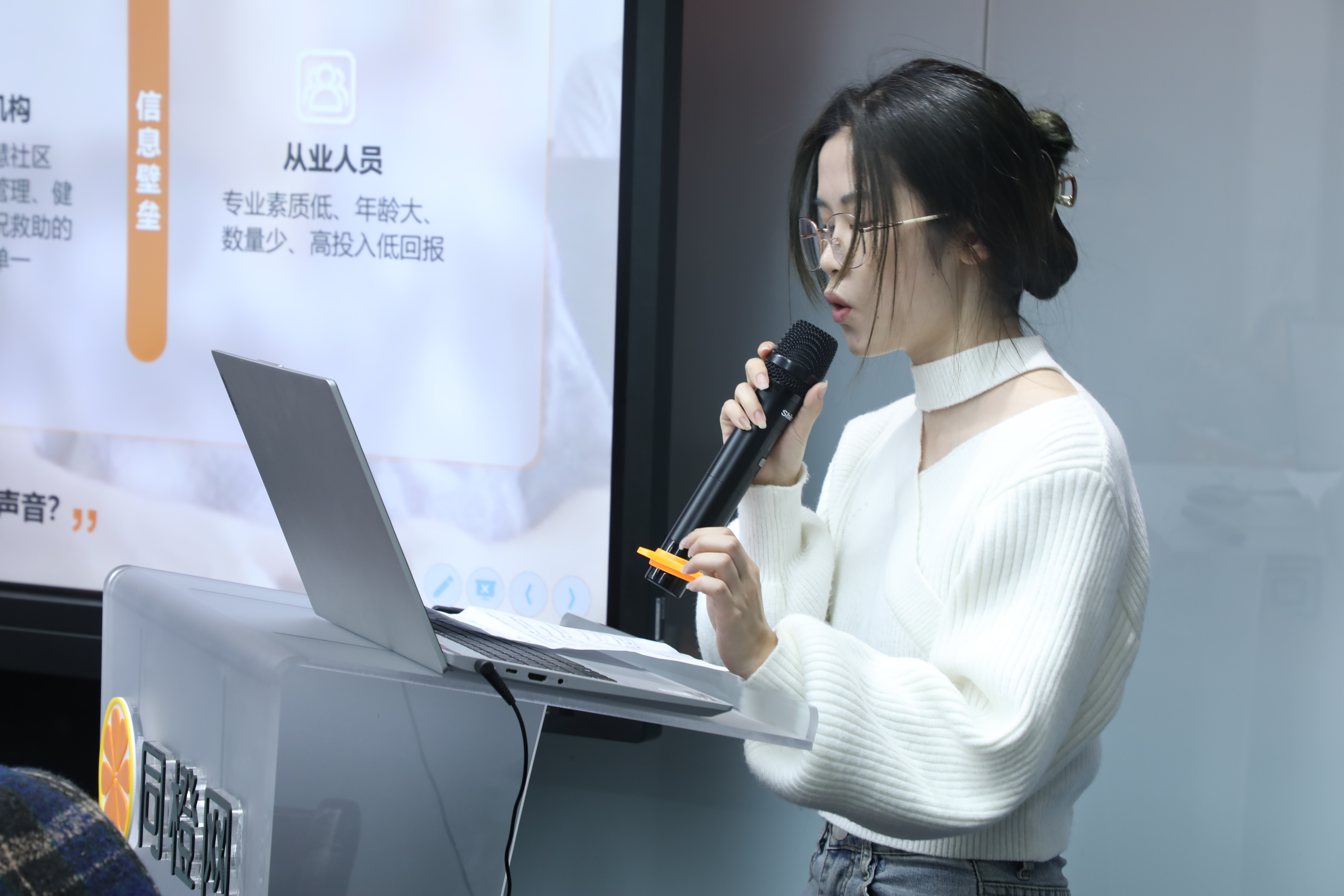 此次活动现场,黄梓欣同学就项目的运营模式、核心卖点、战略规划以及团队建设等内容向各位领导和专家进行了详细介绍。创就业指导专家现场为项目进行了专业点评,指出了项目中存在的薄弱环节,并就创业项目的落实执行进行了具体指导。学生黄梓欣作为团队主创,介绍到101这一名字来源于每年101日国际老人节。大一时,由于外婆住在偏远山区,脑中风后没有来得及治疗,从而导致偏瘫。“传统养老模式不是很及时。”黄梓欣心疼外婆的同时,结合专业特点发现了这一症结,便组织成立了101创业团队。他们研制出了智能可穿戴的跌倒手环,并自主研发App建立大数据平台,遇到突发情况就会向社区工作人员“派单”,提醒他们立马前去查看。此外,他们还着重为老人日间照料中心提供志愿服务,以专业护理能力为老人提供帮助。