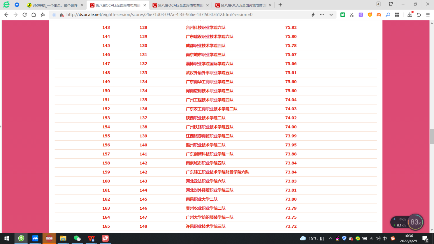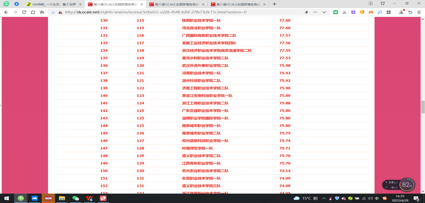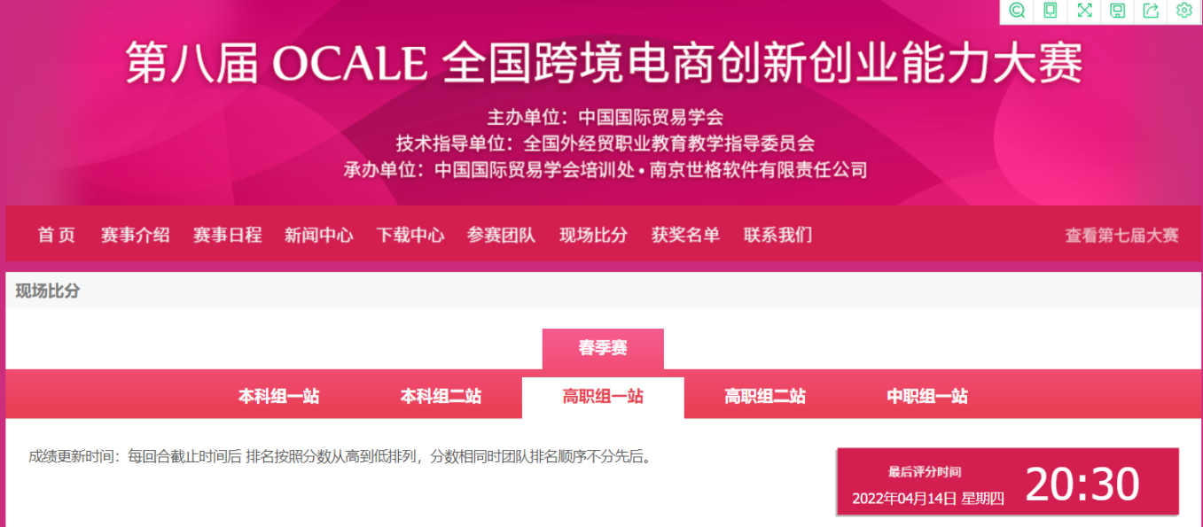 2022412-14日,数字财商学院21级国际商务专业丁凯、陈许鑫、21级跨境电子商务专业高慧、张佳骏、张嘉慧、陈学文、胡小芳、沈钰莹、周蕊、曹杰、毛雨飞、申俊杰同学在指导老师王倍、滕静涛的带领下,组成4支队伍,代表我校参加了第八届OCALE全国跨境电商创新创业能力大赛(春季赛),我校4个代表队与来自全国573所高职院校的代表队展开角逐,荣获4项团体二等奖的好成绩。