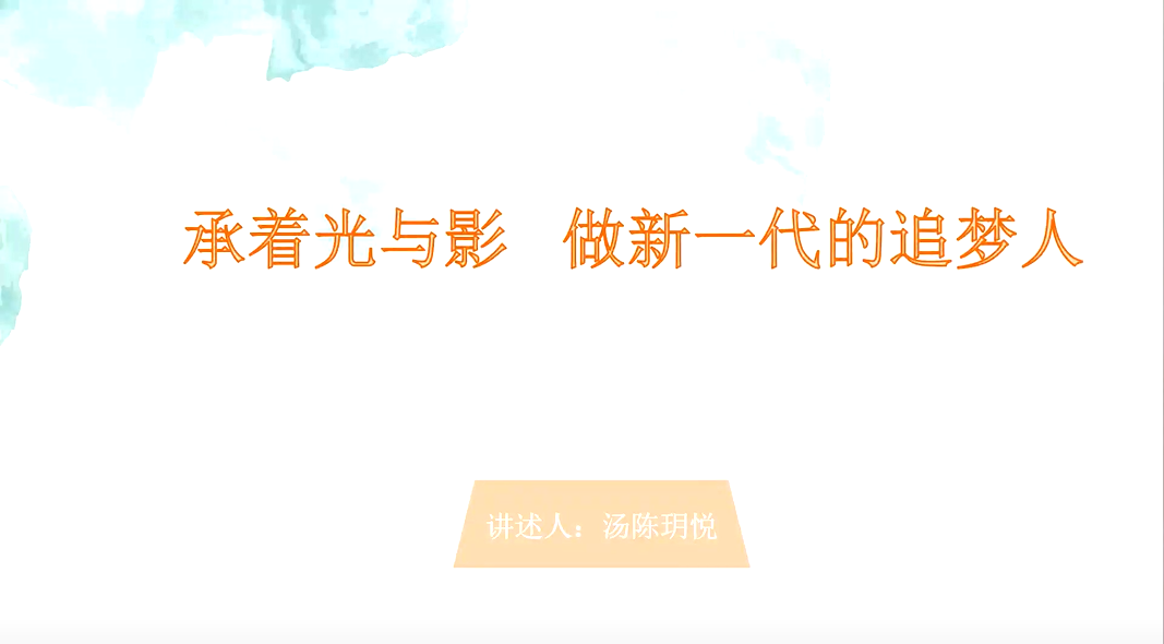 承着光与影,做新一代追梦人。19级幼儿发展与健康管理专业汤陈玥悦同学从“什么要新创业”、“找准定位”、“尽早规划”、“耐得住寂寞着手”,跟大家分享了四碗“鸡汤”,结合大学生职业生涯规划大赛的经验,帮助大家树立生涯规划的理念,鼓励大家追梦前行。