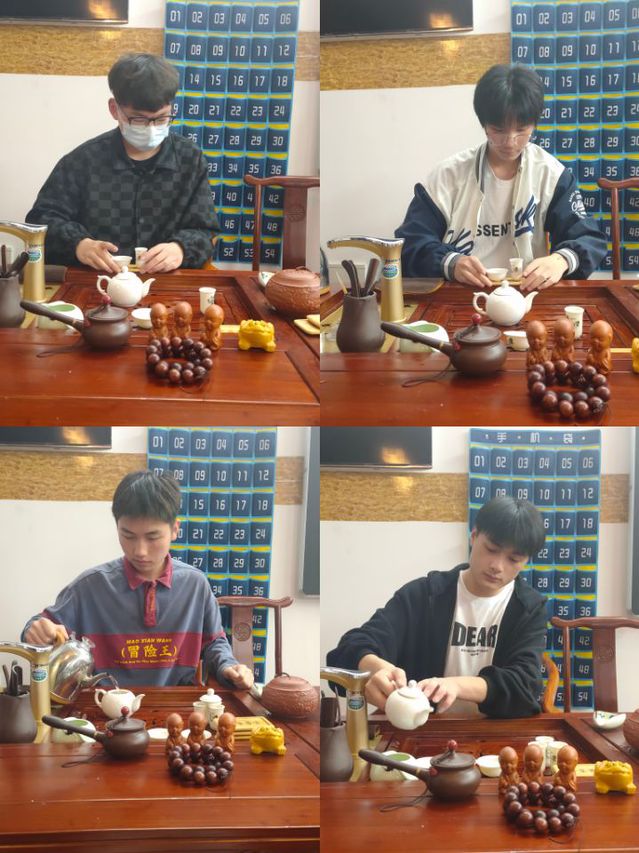 四点半,茶艺表演开始。茶艺表演是以比赛的形式呈现给大家,同学们踊跃报名比赛,表演出形式各异的泡茶技能,黄老师在旁边做技能指导。在经过两个多小时的比拼以后,最终确定了一等奖两名,二等奖三名,三等奖五名,以及优秀奖若干名。这一环节中现场讨论热烈,技能比拼激烈,推动了现场活动达到高潮。