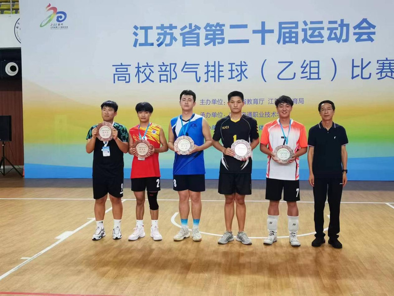 7月15日至20日,江苏省第二十届运动会高校部气排球(乙组)比赛在南京交通职业技术学院行健馆举行。本次比赛由江苏省教育厅、省体育局主办,省学生体育协会协办,南京交通职业技术学院承办。我校代表队首次参赛,由赵壮壮老师担任领队、王长梅老师担任教练员,10名学生参赛。经激烈角逐,我校代表队最终获得了第八名的好成绩,王骏驰和王岩两位同学荣获体育道德风尚奖。