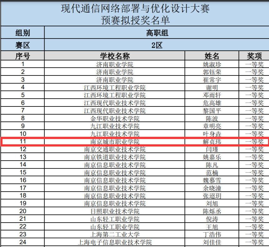 2022年9月18日至9月25日,智能工程学院2020级移动通信技术专业解贞玮、桂欣羽和2021级计算机网络技术专业武云、万梦雪同学代表我校参加了由中国通信学会主办,南京邮电大学承办的2022年第六届“经世IUV杯”全国大学生现代通讯网络部署与优化设计大赛。此项赛事共有三百余所院校的五千余名选手参赛,经过线上预赛和决赛的激烈角逐,我院解贞玮同学获得预赛一等奖,桂欣羽和武云同学获得预赛二等奖,万梦雪同学获得预赛三等奖的好成绩。综合统计获奖结果为:高职组共有155名选手获奖,我院解贞玮同学进入决赛并获得高职组决赛三等奖的较好成绩。