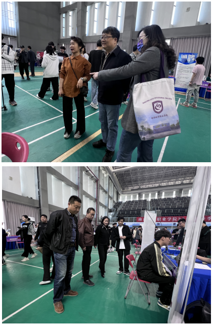 此次活动,我院高度重视,广泛宣传,各班积极动员,认真组织。招聘会当天,溧水校区体育馆门前招聘宣传展板亮眼醒目,场内各用人单位海报简洁清晰。学院领导肖一倩、陈乃鸿带领各教研室主任以及辅导员在现场积极做好组织工作。我院2021级大部分在校生和2020级部分毕业生纷纷走进会场进行交流咨询。川流不息的人群,座无虚席的会场。学生们踊跃地和有意向的用人单位展开一对一交流,在心仪的单位前排起长龙,开启“硬核自荐”。