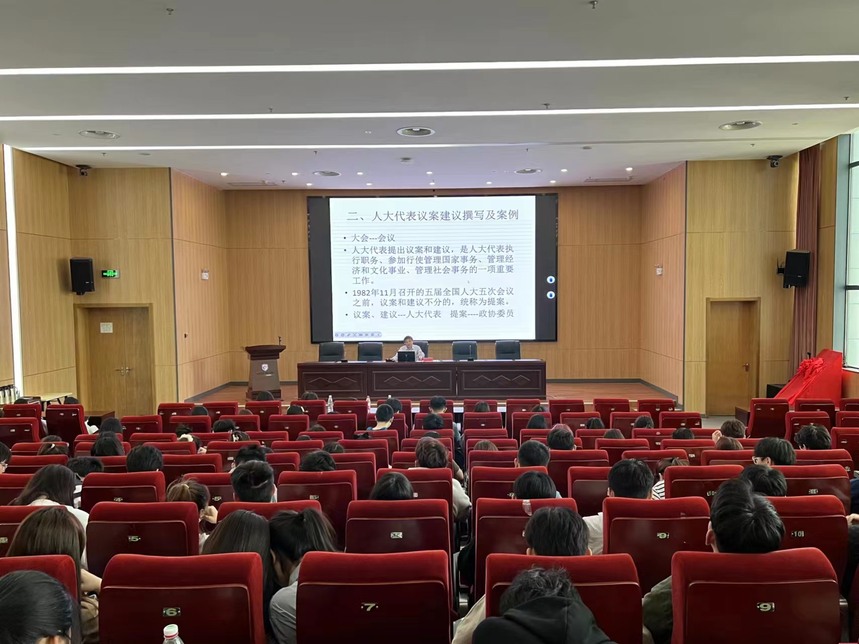 大学生作为中国特色社会主义事业的建设者和接班人,其政治信仰是否坚定,关系到我国民主政治建设和国家思想安全。政治信仰与政治参与密切相关。政治参与是培养大学生政治信仰的重要维度和环节。为增强大学生的政治参与和意识,帮助他们找对参与路径,校团委于近期特举办了“权益有言,提案有声”提案撰写培训讲座。此次讲座邀请了溧水区人大常委会委员、溧水区人大常委会办公室二级调研员陈千云主任为同学们讲解。第七次学生代表大会代表,2022级各班级团支部书记、班长,校院两级学生会权益发展部的同学们参加了此次讲座。