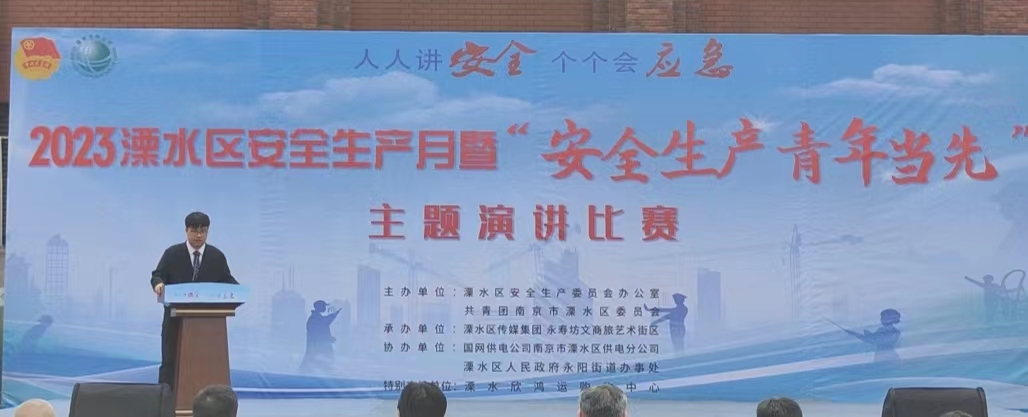 近日,由溧水区安全生产委员会办公室、共青团南京市溧水区委员会主办的2023溧水区安全生产月暨“安全生产 青年当先”主题演讲比赛在永寿坊文商旅艺术街区举办。受党建共建单位溧水空港社区党总支邀请,数字财商学院2022级现代物流管理专业学生梅文鼎代表学院参加比赛,并取得了二等奖的好成绩。