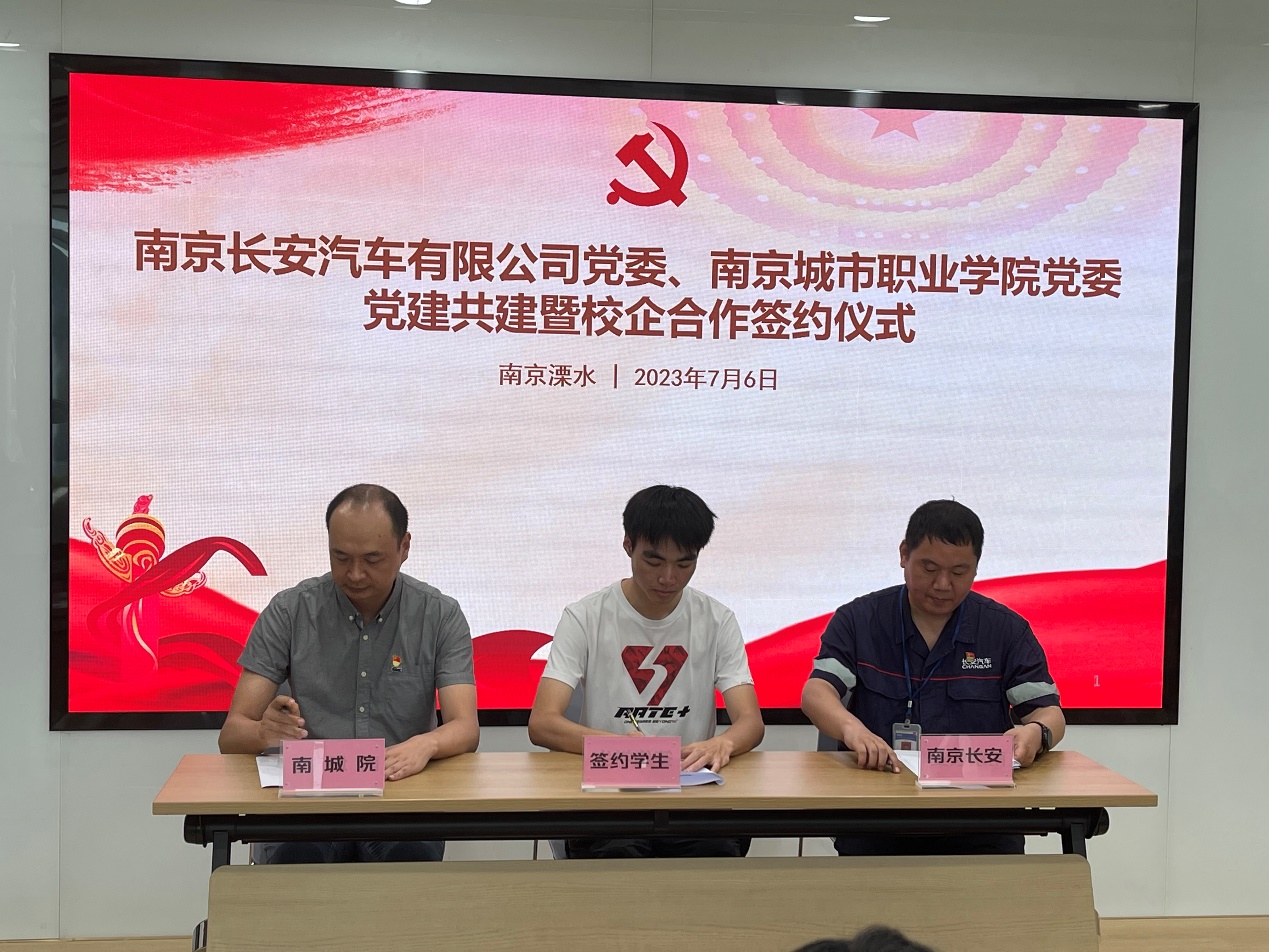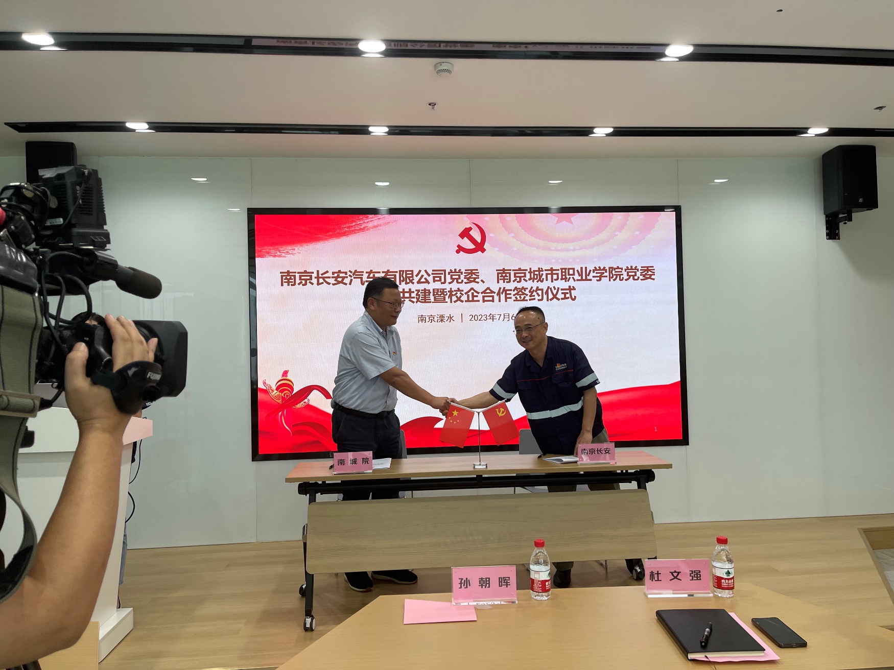 在签约仪式上,双方就人才培养、校企合作等内容进行了座谈交流,并深入探讨了如何以党建引领促进校企事业发展、如何优化校企合作形式和内容等工作。孙朝晖表示,无论企业还是高校,党建工作是核心、基础工作。此次结对共建工作对于进一步提升学校党建工作水平具有十分积极的意义,是促进校企双方实现优势互补、共同发展党建工作的有益尝试。通过党建共建、校企合作,可以有效地推进教师进企业开展实践锻炼。孙朝晖还对在南京长安实习的同学们表示问候,希望同学们把握珍贵的实习机会,在真正的生产一线发挥自己的技能,提升自己的能力。