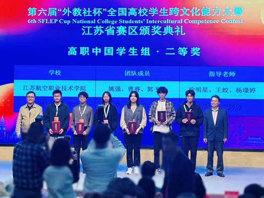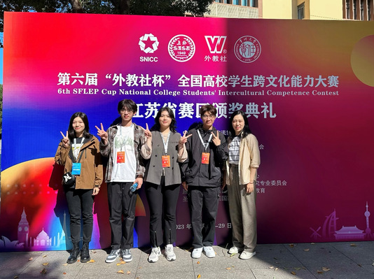 1028日至29日,第六届“外教社杯”全国高校学生跨文化能力大赛江苏省赛区(高职中国学生组)比赛在常州大学举行。我校金文豪、杨启明、朱映臻三名学生组成的代表队喜获大赛二等奖,公共教学部公共英语教研室主任潘敏、英语教师支婷婷分获“优秀指导教师奖”。