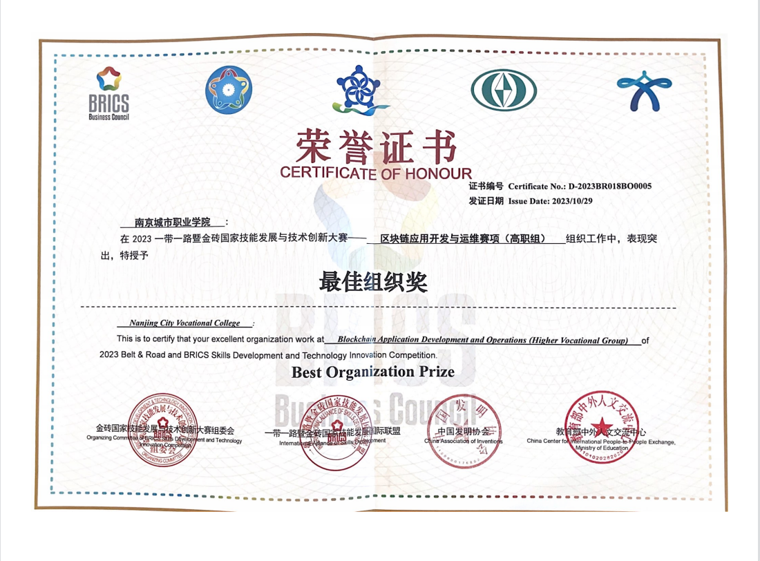 喜报:我校在2023一带一路暨金砖国家技能发展与技术创新大赛区块链赛项中荣获一等奖