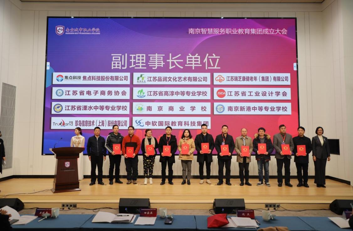 南京市教育局副局长田家英为南京智慧服务职业教育集团揭牌。南京市教育局职社处处长、一级调研员黄子亮宣读南京智慧服务职业教育集团第一届理事会理事长、副理事长、常务理事及理事单位名单。职教集团相关领导为副理事长、常务理事及理事单位颁发证书。
