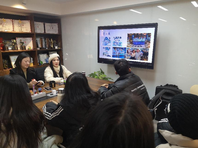 本次活动由江苏瀚港企业设计部经理赵海晴和插画师王黎共同主持,首先赵经理对之前设计的经典案例——“唐伯虎点丘香”品牌策划进行详细的讲解,她分别从产品思路、方案来源以及后期产品衍生进行了介绍,本次设计的产品为玫瑰花茶外包装,为了达到顾客的满意,设计师分别设计了三套方案,在标志设计、标准色、唐伯虎IP、产品包装等方面不断改造升级,直到产品的最终落地。随后插画王老师通过一段产品发布会视频展开介绍,和学生们分享了自己做的IP形象设计,可爱活泼的文旅IP形象深受学生们的喜爱。王老师告诉学生要成为一名优秀的设计师,不仅仅要具备设计能力,同时要把自己培养成一个综合性的复合型人才。最后,企业老师布置了现代学徒制项目的课程作业,希望学生们在了解市场背景后带着设计要求完成最终的方案设计。