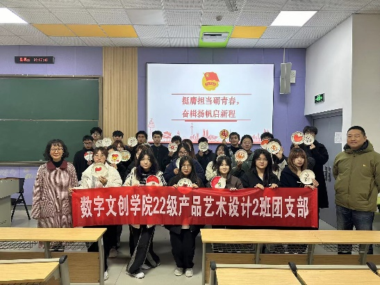 1129日下午,数字文创学院22级产品艺术设计2班在敬业楼111教室开展“挺膺担当砺青春,奋楫扬帆启新程”主题团日活动,进一步推进学习习近平总书记重要讲话精神。本次活动由班级团支书范高婕主持,学院党总支副书记、副院长陈乃鸿及团总支书记潘米乐莅临指导,22产设2班全体同学参加。