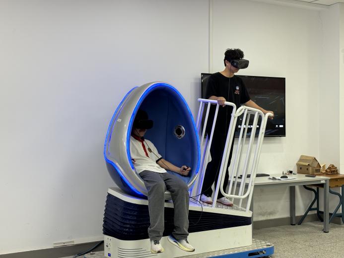 康养工程学院建筑专业实训室的测绘无人机也吸引了师生们的目光,让他们对现代测绘技术有了直观的认识在建筑工程专业实训室,小朋友们参观了建筑标准化现场虚拟仿真沙盘和我校学生设计制作的建筑模型、体验了建筑仿真VR安全蛋椅;在智能工程学院实训工厂,师生们体验了智能网联汽车的先进功能,深入感受了一场技术之旅