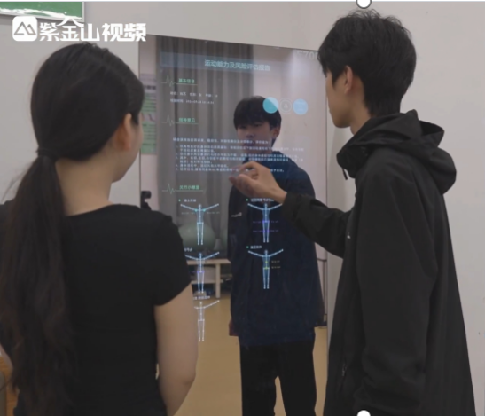 活动现场引人注目的是一台高科技设备体适能与运动损伤风险评估一体机,这台形似镜子的神奇设备,通过先进的人工智能技术,能够精准捕捉使用者在镜前的姿态与动作,即时分析并生成个性化的“运动处方”。