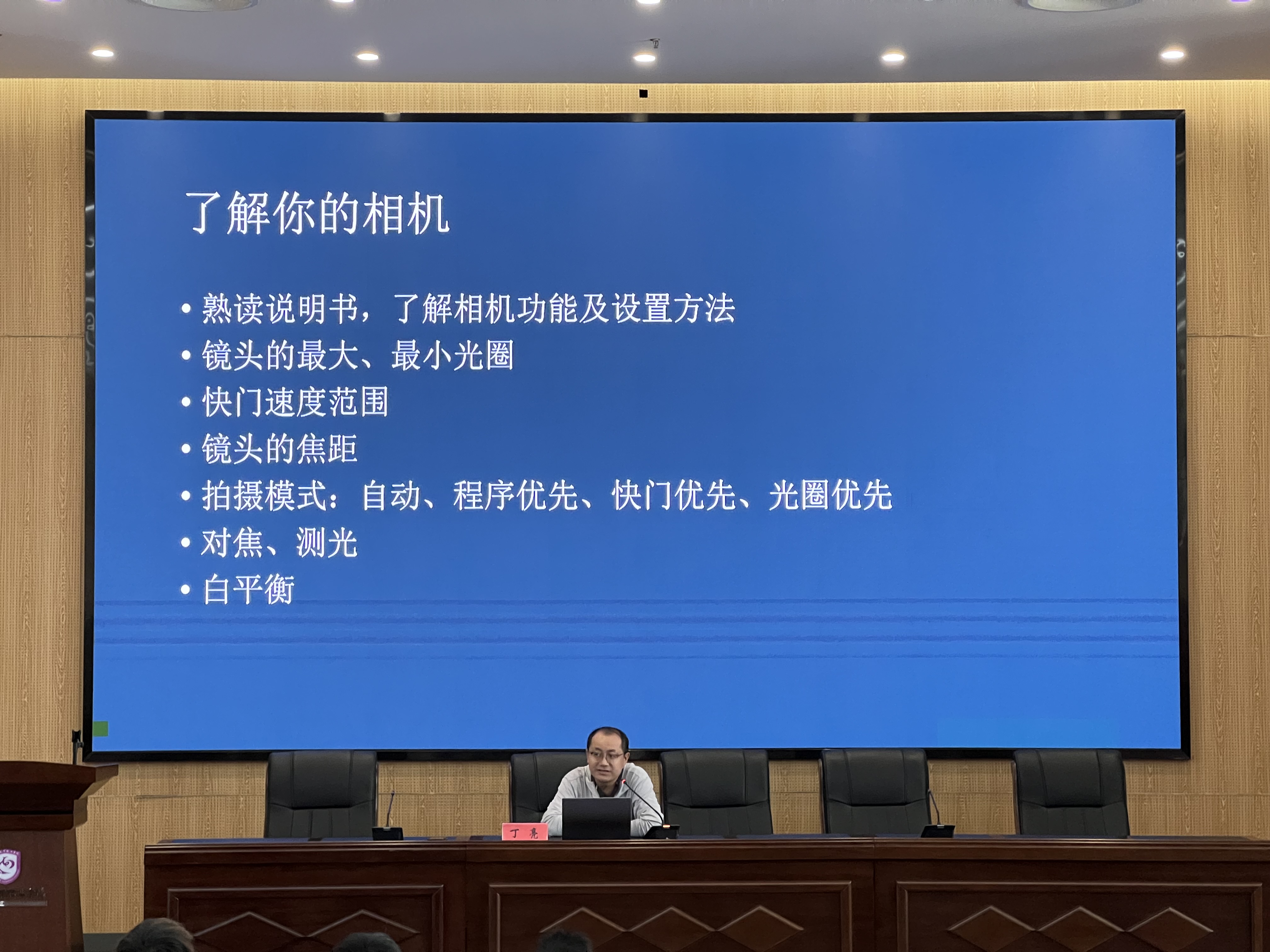 525日,校院两级学生会组织在溧水校区办公楼报告厅开展了新闻摄影培训。此次培训邀请了南京报业集团首席记者丁亮为同学们开展了主题为《新闻摄影实战技巧》的讲座。校院两级学生会100余名工作人员参与培训。
