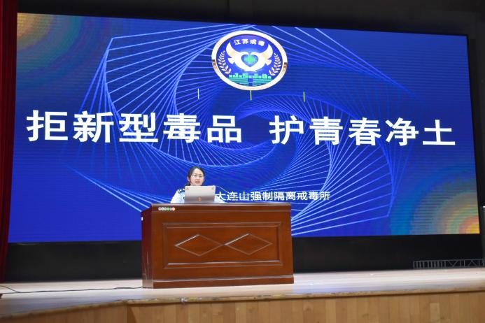 南京市大连山强制隔离戒毒所的四级警长丁彬彬为在场师生带来了题为《拒新型毒品  护青春净土》的讲座。丁警长详细介绍了当前的禁毒形势,深入讲解了麻精药品、新精神活性物质以及未列管成瘾物质的滥用危害、防范知识和法律后果。的讲座内容丰富、深入浅出,极大地提升了师生们对毒品危害的认识和防范能力。