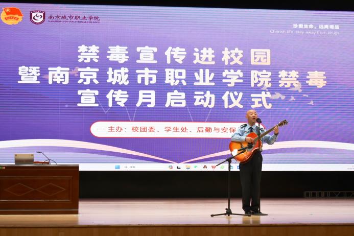 随后,南京市禁毒办的陈林警官以寓教于乐的方式进行了一场别开生面的禁毒宣讲。他通过演唱禁毒歌曲、与现场师生互动等形式,生动地介绍了毒品的种类、危害及防范知识。现场气氛热烈,学生们积极参与互动,宣讲效果显著。