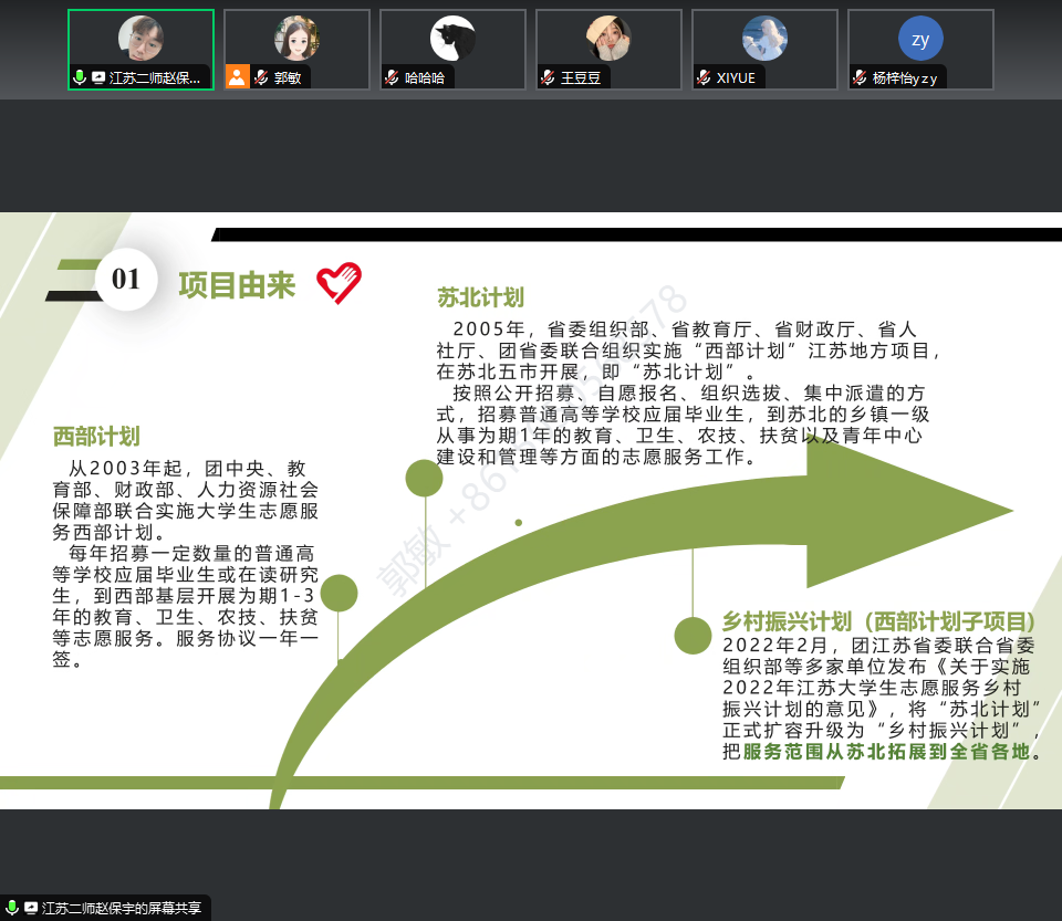 在宣讲过程中,赵老师还详细介绍了两个计划的工作步骤、专项情况以及服务期间可能遇到的相关问题。同学们纷纷表示,通过赵老师的讲解,他们对西部计划和江苏大学生志愿服务乡村振兴计划有了更加深入的了解和认识,也更加坚定了参与志愿服务的决心和信心。