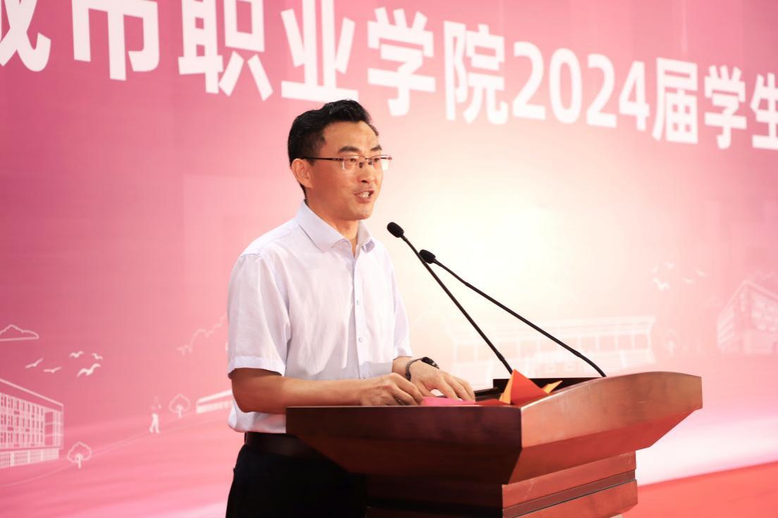 张煌副校长宣读《关于表彰2024届优秀毕业生的决定》,希望受表彰的毕业生谦虚谨慎、戒骄戒躁、开拓创新、与时俱进,为社会发展作出积极贡献,并鼓励全体毕业生以先进为榜样,刻苦钻研,锐意创新,以实际行动践行社会主义核心价值观。