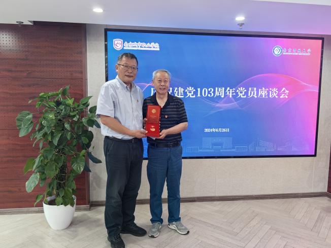 会上,“光荣在党50年”老党员代表于春福同志以“如何做一名优秀的共产党员”为题开展交流分享,从自己的亲身经历出发,以一个个生动的小故事讲述了电大办学的艰辛历程,凸显出党员同志不怕苦、不怕累,脚踏实地干事创业精神,鼓励年轻党员珍惜当下,抓住好的机遇努力作为,为学校发展贡献力量,并祝愿学校事业蒸蒸日上。孙朝晖书记向老党员代表发放“光荣在党50年”纪念章。