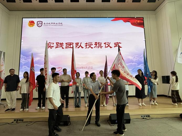 在仪式的最后环节,史献平为实践团队代表授旗,标志着我校2024年暑期社会实践活动正式拉开帷幕。