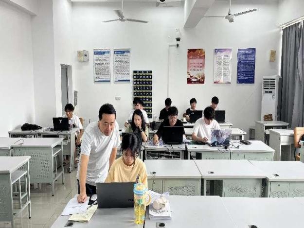 715日是入伏第一天,也是暑假的第一天。校园里没有了平日的喧嚣,智能工程学院勤学楼里却弥漫着紧张而热烈的备战气氛。为在 2025 江苏省职业院校技能大赛中取得优异成绩,智能工程学院的师生们放弃了假期的休息时间,全身心投入到紧张的备赛训练中。