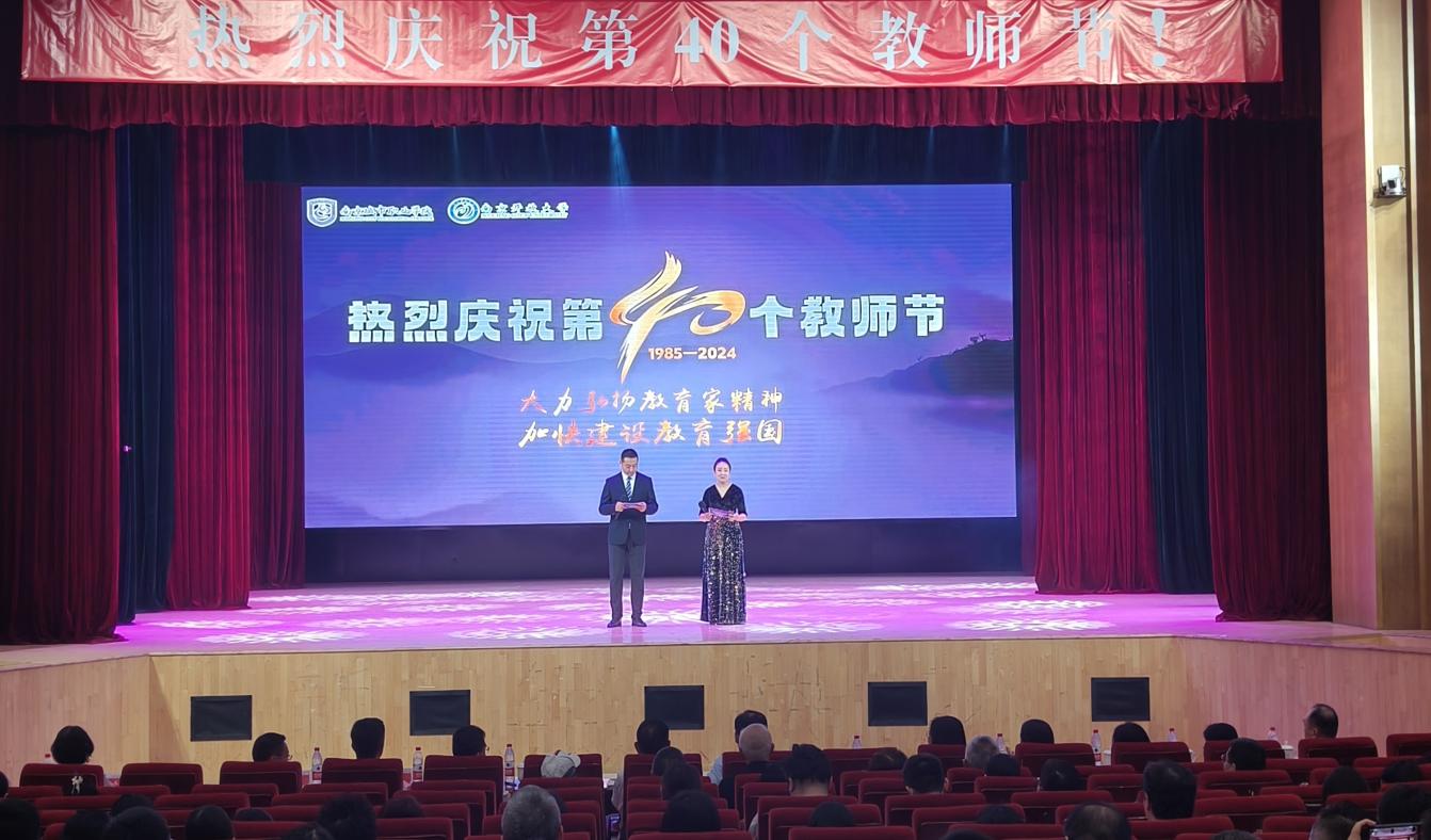 2024年9月6日下午,我校在大学生活动中心大礼堂隆重召开“大力弘扬教育家精神,加快建设教育强国”庆祝第40个教师节暨2024年秋季学期全校教职工大会。南京市教育局二级巡视员潘东标出席本次会议,全体校领导、中层干部、教职员工、离退休教职工代表以及学生代表参加大会。