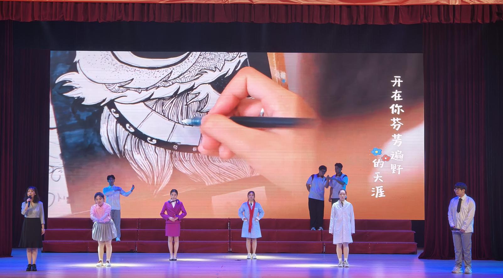 学生们用精心准备的节目,在成长的舞台上讴歌校园,在特殊的节日里向老师告白。朗诵表演《灯塔》,动情而高昂;歌舞诗表演《送你一朵小红花》,代表着同学们对老师辛勤付出的崇敬与感激;舞蹈表演《万疆》,以青春之名,祝福祖国,将大会气氛推向高潮。