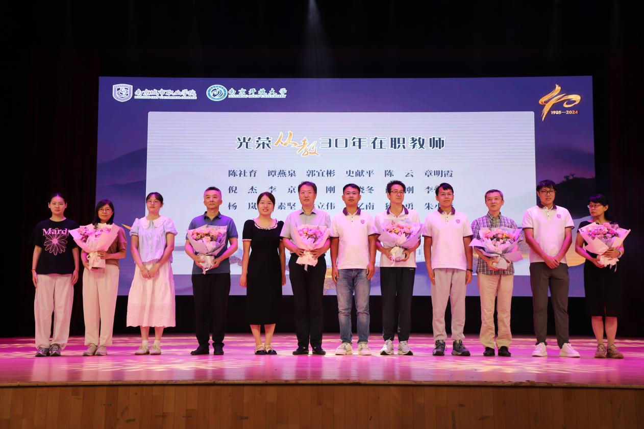 表彰环节,学校党政领导班子、学生代表以及新进教师代表向省市竞赛突出贡献者、师德师风先进集体和个人、光荣从教30年的教师颁发了荣誉证书并献上鲜花,向他们表达最崇高的敬意,送上最真挚的祝福,感谢他们为学校发展作出贡献。