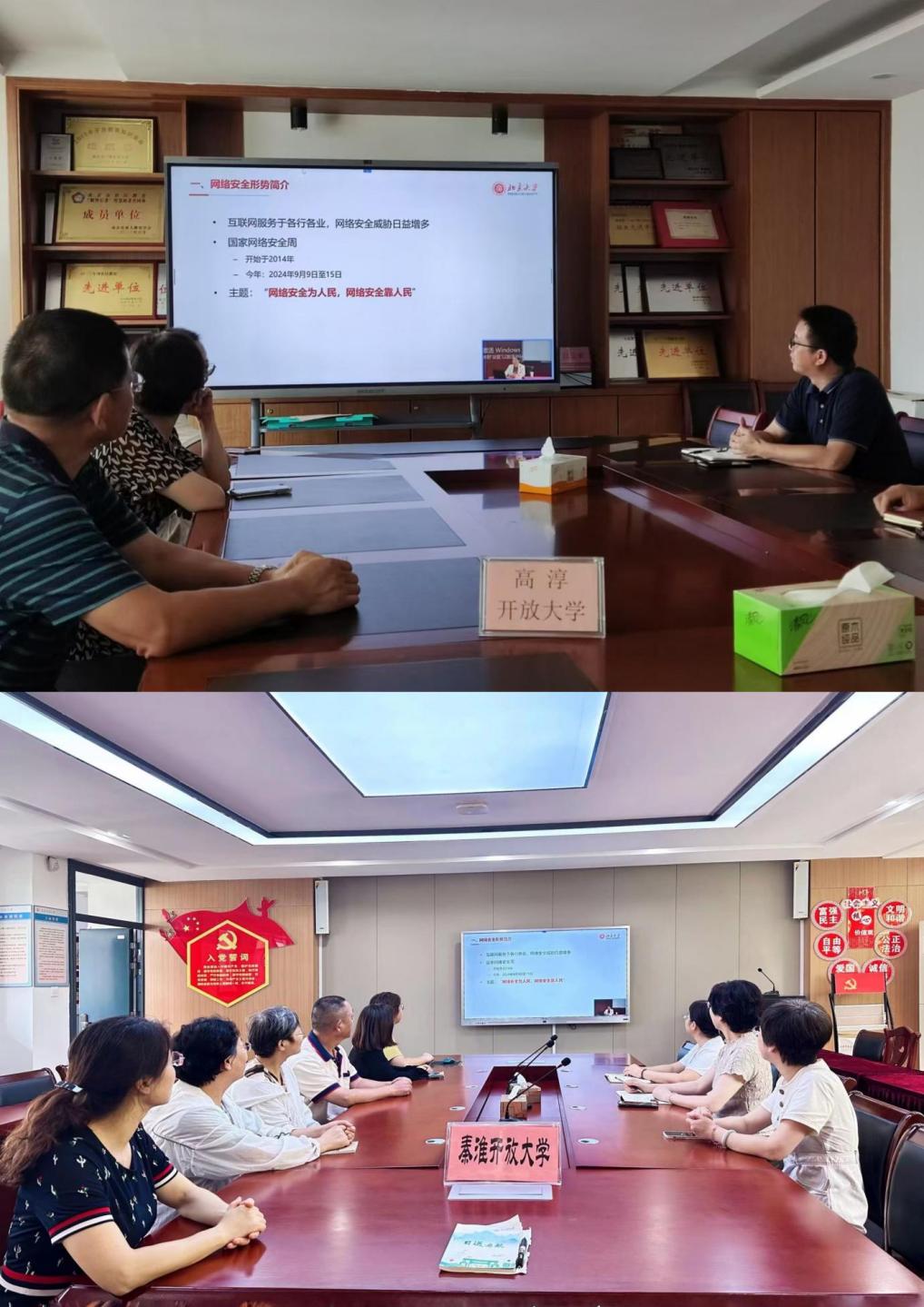 宣传周期间,北京大学计算中心陈萍老师为国家开放大学体系教职工开展专题讲座,我校继续教育中心组织各办学点开展网络安全知识直播学习,使不同校区的教职工都能同步接受到高质量的网络安全教育,提升了教职工网络安全意识。