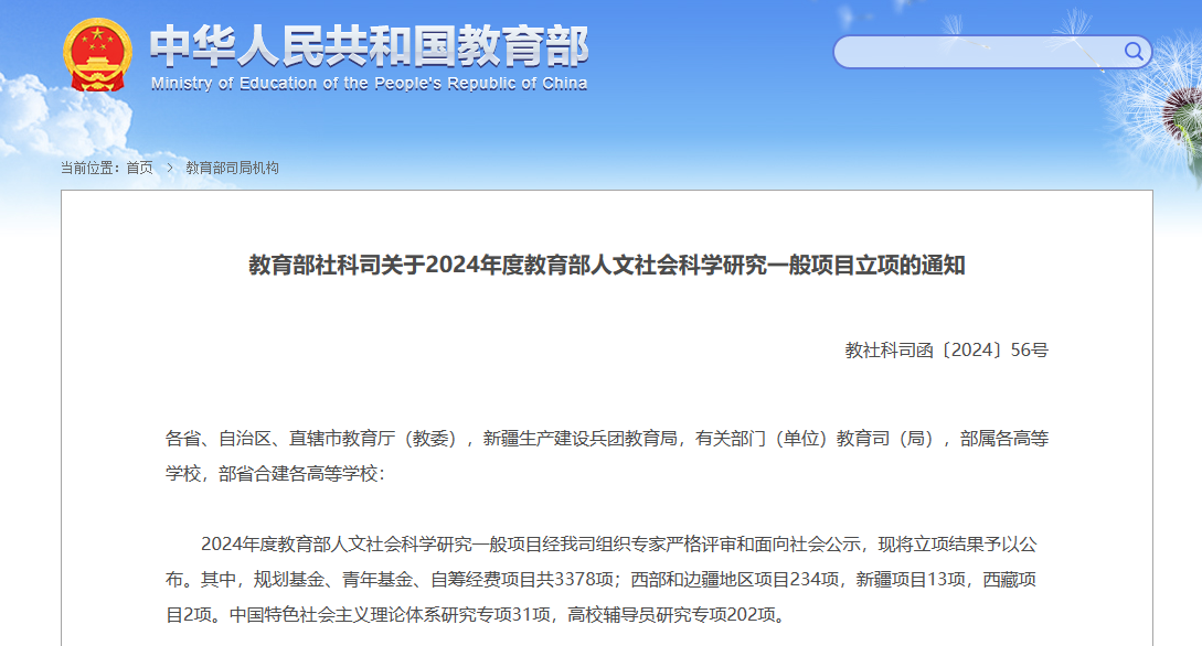 这是我校首次获得教育部人文社会科学研究项目立项,实现了新的突破,是近年来学校实施“攀登行动”、坚持高质量发展、持续重视科研工作、不断加大科研投入、优化科研环境、广大教师积极投身科研取得的一项高层次科研成果。