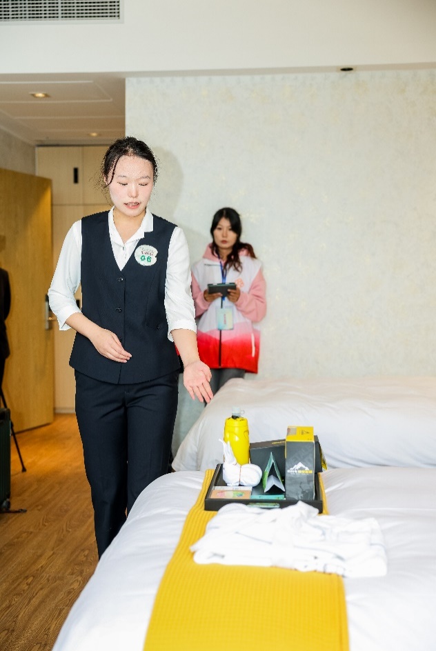 本次大赛亮点多多。“营销、活动技能实操”环节,选手们展现出了对民宿文化的深刻理解。他们致力于传承和弘扬民宿所在地特色文化,如南京本地茶文化、非遗文化和红色文化,让客人在入住时充分感受到浓郁的地域风情。“接待技能实操”环节,不少选手在传统技能中加入了创新元素,针对亲子、情侣和老人三类不同宾客类型,通过一系列创新设计进行客房的特色场景布置,令人耳目一新。