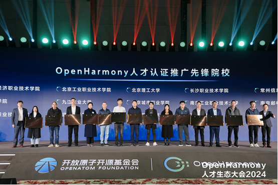 自我校立项江苏省首批现场工程师专项培养计划项目以来,智能工程学院持续深化与OpenHarmony开源社区的深度合作。11月27日,“OpenHarmony人才生态大会2024”在武汉召开,我校与北京理工大学、南京邮电大学、南京工业职业技术大学等高校共同获得“OpenHarmony人才认证推广先锋院校”奖项。