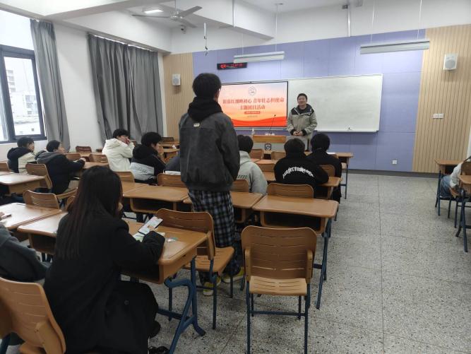 活动伊始, 2024 年江苏省职业院校技能大赛(高职组)云计算应用赛项一等奖获得者、云网链协会功能型团支部书记陈宁详细讲解了第二课堂的相关文件,他还结合自身备战和参加技能大赛的宝贵经历,分享了在追逐梦想道路上如何坚守初心、砥砺前行。