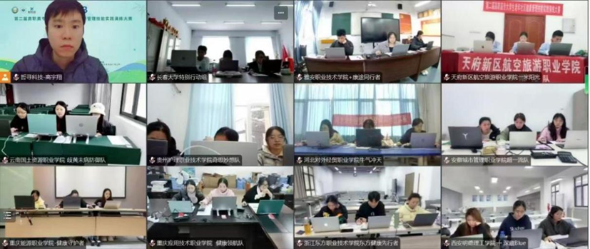 三位参赛选手在院内选拔赛中脱颖而出组建集训队,学院紧锣密鼓开展系统而深入的强化训练,全方位提升选手专业技能和赛事应对能力。全国大赛采用线上比赛方式,虽然隔着屏幕,但通过云视频依然可以感受到赛场秩序井然。所有参赛队经线上抽签自动分配到10个健康管理情景模拟对抗环境中。大赛历时150分钟,参赛选手需要完成健康评估、个性化健康干预方案制定、健康监测与跟踪服务等一系列复杂任务。这些环节不仅考验了选手们的专业知识和实操技能,更对他们的团队协作能力和创新思维提出了严峻挑战。我校参赛队沉着冷静、团结协作,凭借对老年人身体状况的全面分析和精准评估,提出了科学有效的健康管理建议,并展现出良好的团队合作精神,确保各项任务圆满完成。