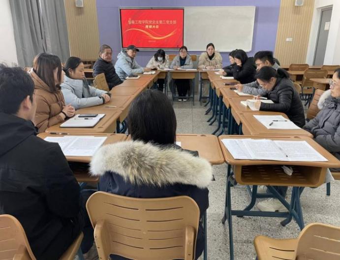 为落实支部发展工作计划,智能工程学院党总支第三党支部于12月24日下午12:30在勤学楼318室召开支部党员大会,本次大会有理论学习、讨论接收预备党员、党课学习三项议程,支部全体党员教师参加。会议由支部书记戴志娟同志主持。