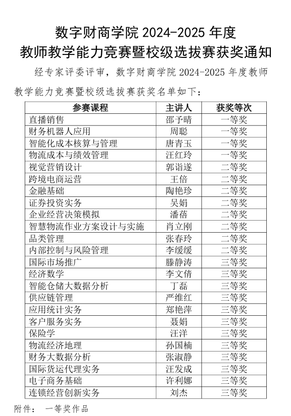 竞赛围绕2025年春季学期开设的专业课程展开,要求结合职业教育国家教学标准、学校专业人才培养方案及课程标准,融入新方法、新技术、新工艺和新标准,体现专业升级和数字化转型等。经过专家评委的严格评审,本次竞赛共评选出一等奖4名、二等奖8名、三等奖12名。其中,《直播销售》课程由邵予晴老师主讲,凭借其创新的教学设计和对数字化营销场景的精准把握,荣获一等奖。该课程不仅融入了直播电商职业技能标准,还结合了省高职院校职业技能大赛要求,实现了课赛融合与课证融通。此外,《财务机器人应用》《智能化成本核算与管理》和《物流成本与绩效管理》等课程也在竞赛中脱颖而出,展现了教师们在专业课程设计上的深厚功底。