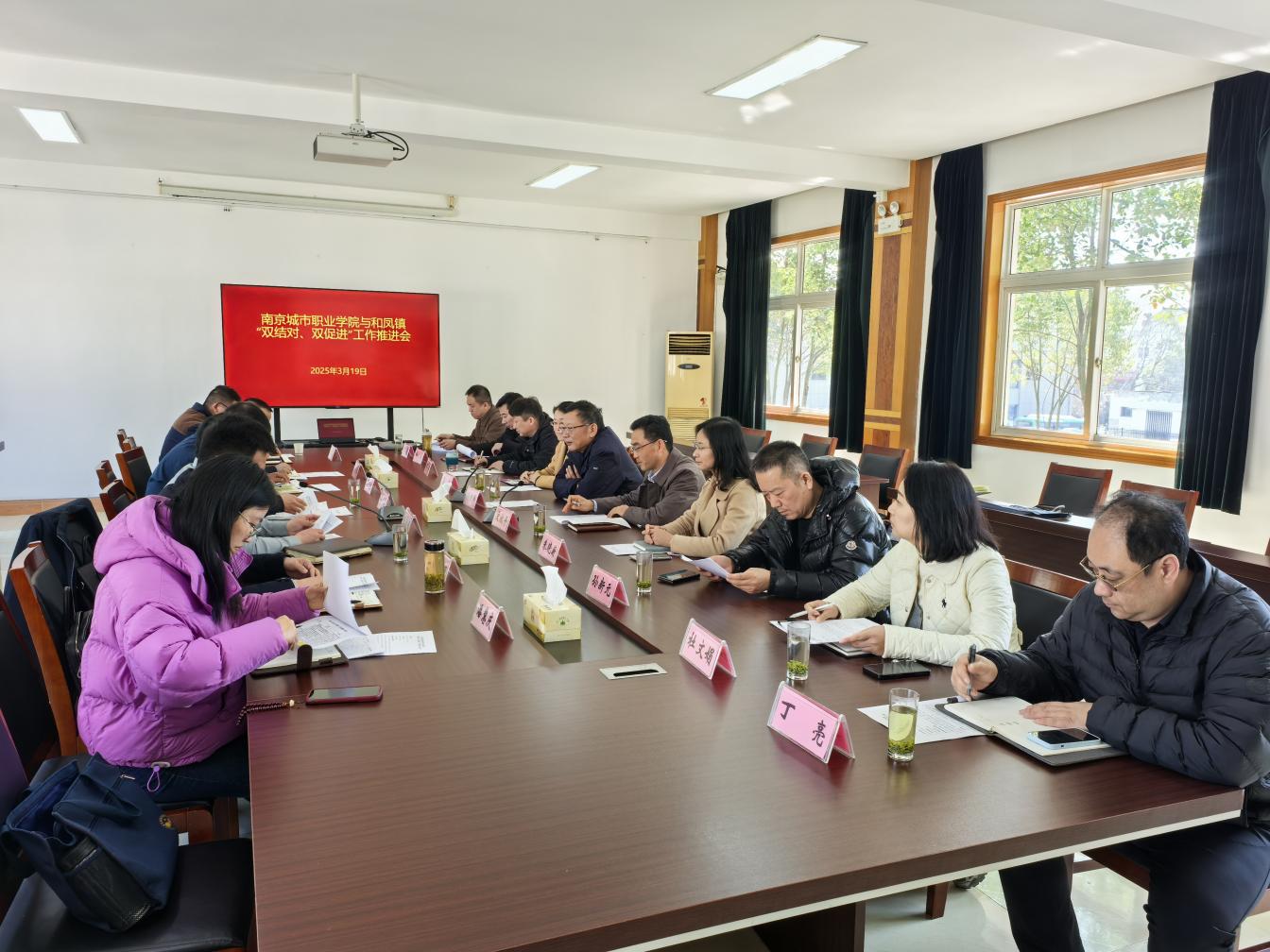 为进一步深入贯彻落实“双结对、双促进”党建共建机制,创新构建校地融合的乡村振兴模式,319日上午,学校与和凤镇召开推进会。校党委书记孙朝晖,溧水区委常委、组织部部长陈钢出席会议并讲话。党委副书记史献平,党委委员、组织人事部部长葛静,相关部门负责同志,和凤镇班子成员,相关村社及部门负责人参加推进会和走访调研。