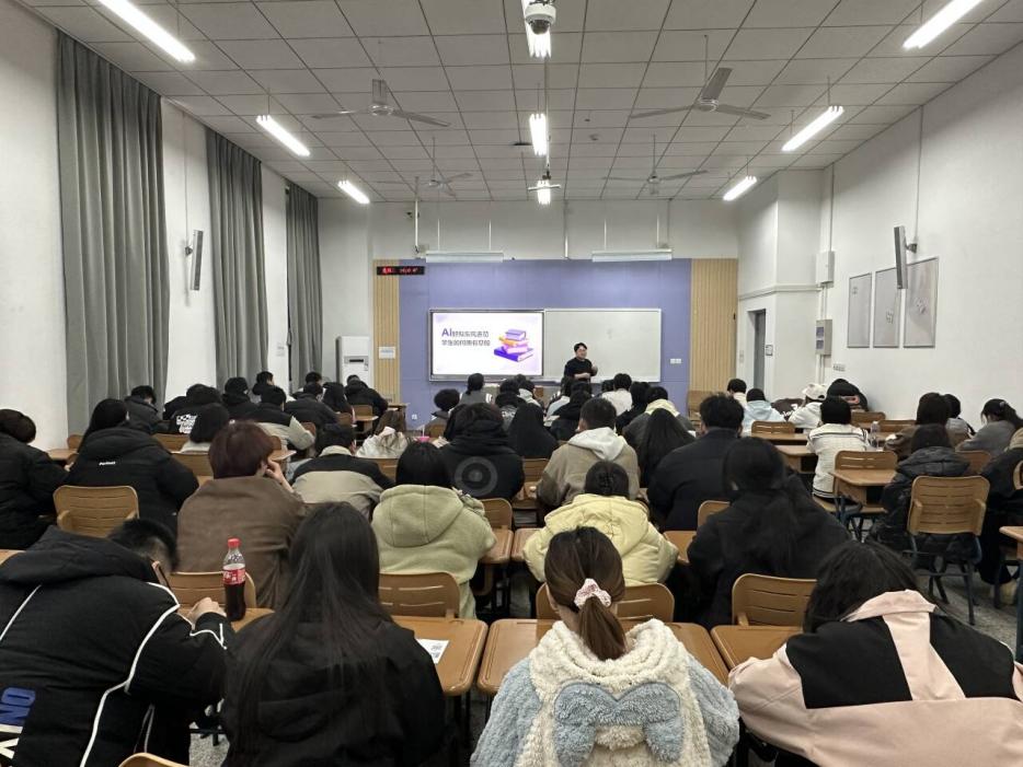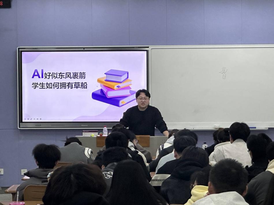 讲座中,曹辉深入剖析AI技术在当今社会各个领域的广泛应用和深刻变革,从医疗、教育到金融、制造业等,展示AI未来的发展趋势。通过生动的案例和实际项目经验,详细阐述大学生在面对这一科技浪潮时,如何通过跨界融合的方式,解锁新的职业发展路径和创新机会。在互动环节,同学们积极提问,就AI技术的应用前景、跨界学习的方法和策略、如何提升自身在AI领域的竞争力等问题与曹辉进行深入交流。曹辉耐心解答,鼓励同学们要勇于探索、积极实践,培养跨学科的思维方式和综合能力。