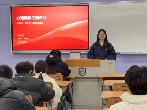活动期间,各班团支部精心筹备,形式多样且精彩纷呈。有的团支部开启“心灵树洞”,让同学们匿名写下内心烦恼,共同探讨解决方案,在分享中发现彼此并不孤单;有的团支部观看心理健康教育电影,从影片中学习心灵调试方式,释放来自学业、生活等方面的压力,感受身心的舒缓。课堂上,团支书和心理委员变身“心灵引路人”,借助生动的PPT和视频资料,引导大家树立正确的心理健康观念,强调心理问题如同感冒一样平常,无需避讳,关键在于正视与应对。同时,心理委员宣传校内外心理服务资源,包括详细的心理咨询室地址、预约电话,以及24小时在线的校外公益心理热线,确保学生求助有门。