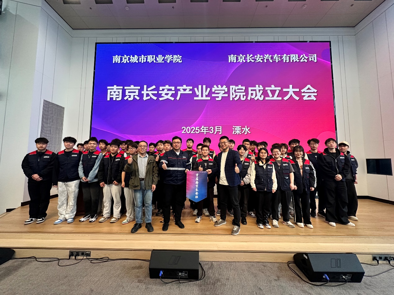 南京长安产业学院由我校与南京长安汽车有限公司合作共建,以培养创新型、复合型高技能人才为目标,将企业技术标准、生产工艺引入课堂,通过“订单培养”“双导师制”实现“入学即入职、毕业即上岗”。