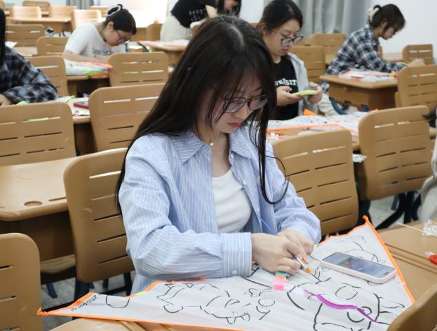 活动当日,现场气氛热烈非凡。我院精心准备了空白风筝、颜料、画笔等丰富多样的DIY材料,同学们满怀期待地开启了他们的创作之旅。大家发挥天马行空的想象力,有的同学以绚丽的色彩勾勒出梦幻的童话场景;有的则用细腻的笔触描绘喜爱的卡通人物;还有的写下励志话语,让梦想随着风筝翱翔天际。在绘制过程中,同学们相互交流、分享创意,欢声笑语回荡在活动场地,不仅展现了个人独特风采,更增进了彼此间的情谊。