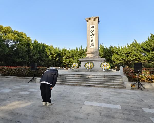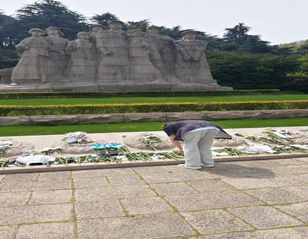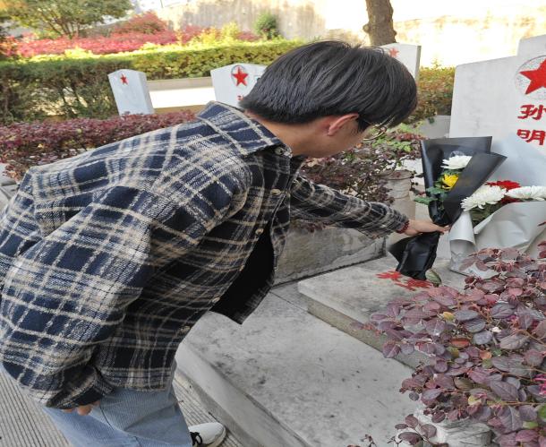 活动期间,返乡的同学们纷纷行动起来,利用假期时间寻访家乡的烈士陵园、抗战遗址、英烈墓碑等。在庄严肃穆的烈士陵园,同学们怀着崇敬的心情,向革命烈士敬献鲜花,一朵朵盛开的鲜花,寄托着同学们对先烈们的无限敬仰与追思。大家认真擦拭墓碑,拂去岁月的尘埃,让烈士的英名更加清晰。在墓碑前,同学们自发默哀,低头闭目间,仿佛能感受到先烈们为国家和人民英勇献身的伟大精神,心中涌动着对他们的深切缅怀之情。
