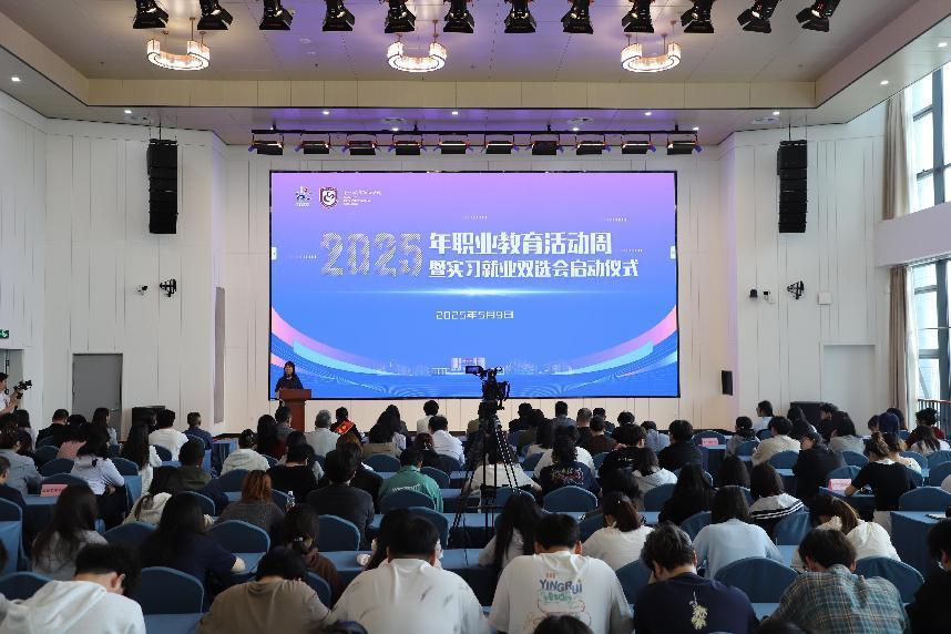 5月9日上午,我校2025年职业教育活动周暨实习就业双选会启动仪式在溧水校区科创楼隆重举行。本次活动周主题为“一技在手,一生无忧”。启动仪式热烈隆重,全体校领导班子为我校2025年江苏省职业院校技能大赛获奖选手颁奖,并特邀全国劳动模范、“五一”劳动奖章获得者、溧水区人大代表张恒楠工程师与师生面对面。