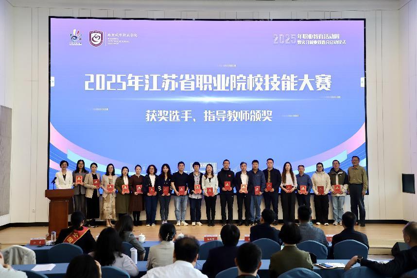2025年江苏省职业院校技能大赛获奖师生、相关职能部门及二级学院负责人、学生代表等200余人参会。会议由校党委委员、副校长江景主持。