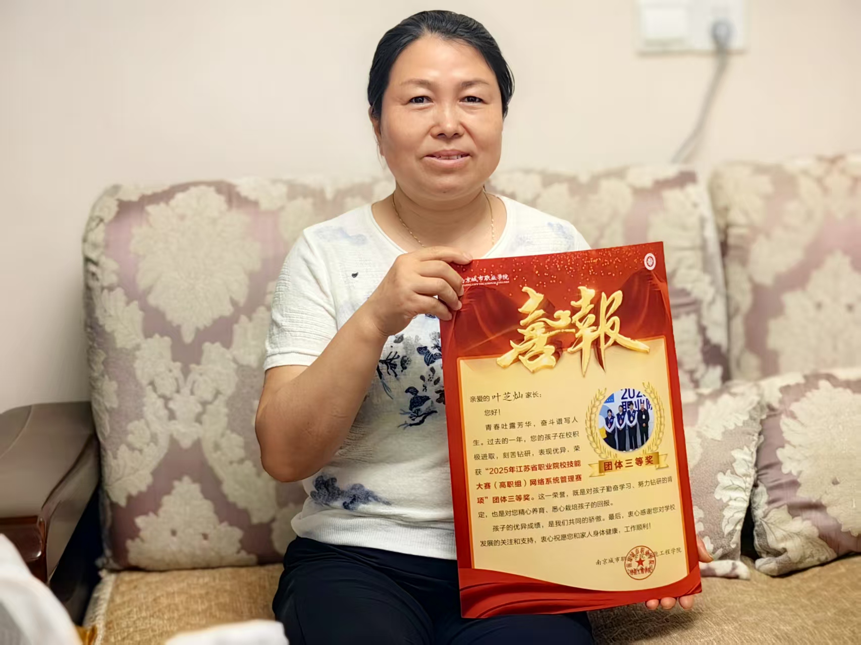 为深化家校协同育人机制,让家长共同见证学生成长硕果,5月,智能工程学院启动“喜报送家长”暖心行动,将2025年江苏省职业院校技能大赛中斩获的佳绩,以定制喜报的形式寄送至获奖学生家中。这份承载荣誉与感恩的“红色喜讯”,不仅是对学子专业能力的高度认可,更架起了家校情感联结的桥梁。