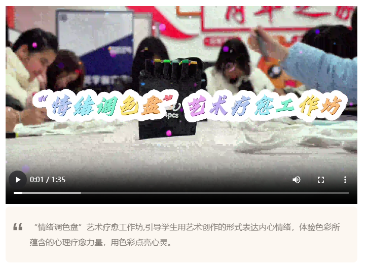 中国大学生在线由教育部主管主办,教育部思政司指导,中国教育出版传媒集团承办,是面向全国大学生开展思想政治教育、展示优秀网络文化建设成果的重要平台。今年上半年,我校积极参与由其举办的“春日的心生”心理健康教育及作品征集展示活动,旨在引领学生感悟生命美好,培育乐观坚韧的积极心理品质,促进学生健康成长和全面发展。其中,“3·20咱爱您”心理健康教育宣传周生动展现了我校丰富多彩的心理育人活动与学子青春活力。“情绪调色盘”艺术疗愈工作坊作为特色心理活动,积极引导学生用艺术创作的形式表达内心情绪,体验色彩所蕴含的心理疗愈力量,用色彩点亮心灵。