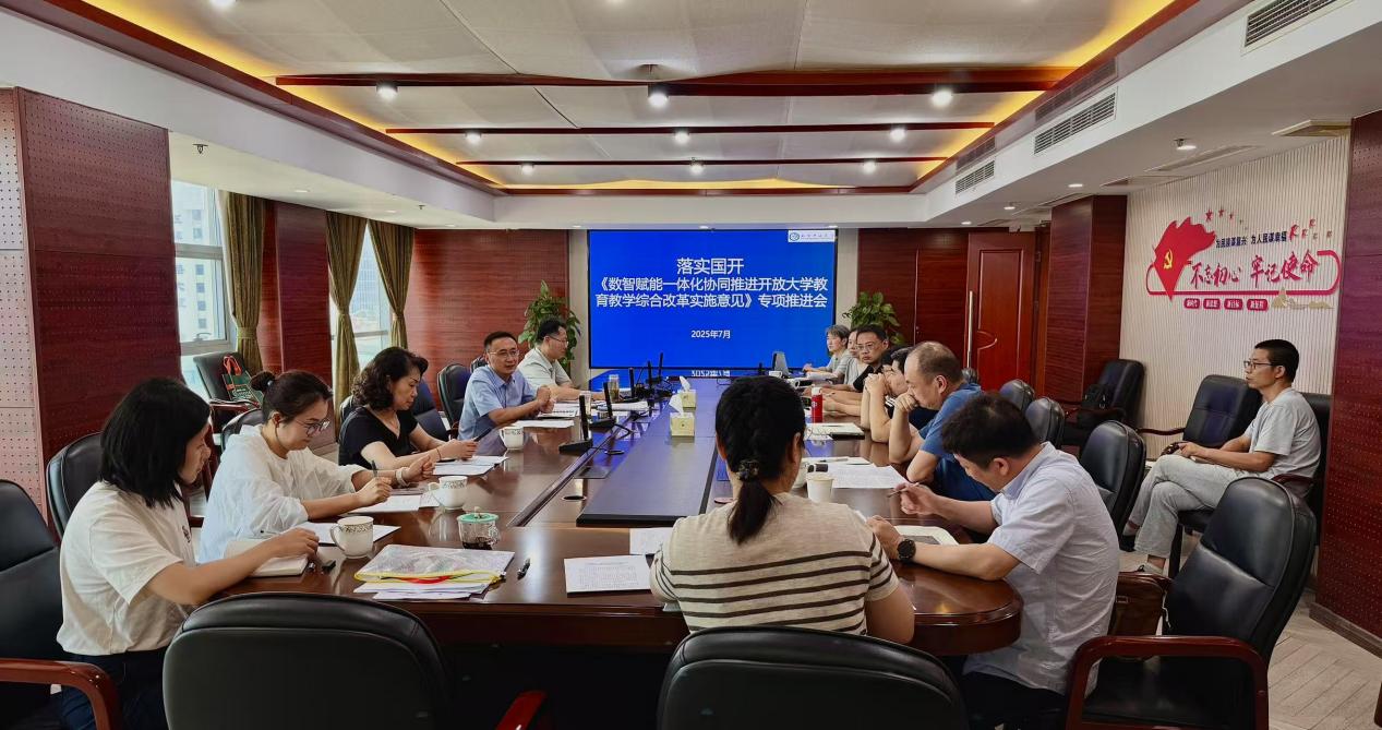 为推进落实国家开放大学《数智赋能一体化协同推进开放大学教育教学综合改革实施意见》,促进开放教育高质量发展,7月2日上午,我校在新街口校区召开专项推进会。教务处、装备与信息化建设处、二级学院等相关职能部门负责人参会,副校长陈正宇主持会议。